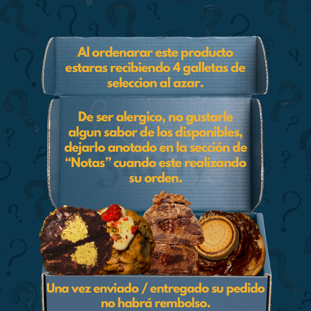 al ordenar esta caja se estarán escogiendo 4 galletas al azar de nuestro menú disponible en ese momento.